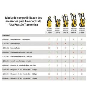 Mangueira De Alta Pressão 5 M Para Lavadora De Alta Pressão Tramontina Tramontina Mangueira de Alta Pressão 5 m para Lavadora de Alta Pressão Tramontina Tramontina - Todo mundo sabe a importância de contar com acessórios e ferramentas que ofereçam praticidade na limpeza, por isso, apresentamos a Mangueira de Alta Pressão 5 metros para Lavadora de Alta Pressão Tramontina. Por possuir pressão máxima de 16 MPa, 160 bar, 2320 psi e engate rápido, a Mangueira Tramontina é a escolha ideal para quem busca por agilidade.OrientaçõesComprimento: 5 m Pressão máxima: 16 MPa; 160 bar; 2320 psi Temperatura máxima de operação: 60C Adaptável as lavadoras de alta pressão Tramontina: 42552/012 42552/022ObservaçõesSempre utilizar óculos de segurança para proteger os olhos; Utilizar luvas e protetor auricular; Utilizar sapatos antiaderentes para proteger os pés e evitar quedas; Sempre prestar atenção na tensão indicada no produto antes de usá-lo; Nunca tocar no plugue ou na tomada com as mãos molhadas; Não trabalhar em posições anormais; Nunca direcionar o jato de água a pessoas ou a si mesmo; Ao utilizar extensões, utilizar plugues e soquetes a prova de água; Recomenda-se consultar o manual de instruções para maiores informações.Características GeraisEAN137891114164480DUN1417891114164487NCM8424.90.90Peso Líquido0,5400 kg.Peso Bruto0,5700 kg.Metragem0,003900 m.Dimensões Embalagem (Compr. X Larg. X Alt.)300x 260x 50 mm. Características Gerais do Produto: Garantia: - 1 Ano