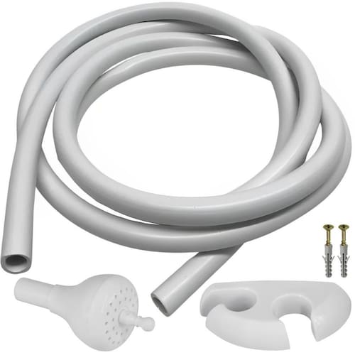 Comprimento da Mangueira: 3 metro. Material: PVC reforçado com conexões em plástico resistente Cor: Branca Compatibilidade: Sistemas de chuveiros
