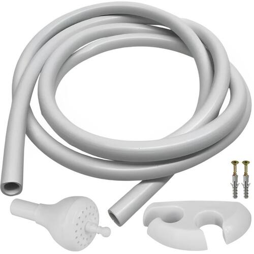 Comprimento da Mangueira: 5 metro. Material: PVC reforçado com conexões em plástico resistente Cor: Branca Compatibilidade: Sistemas de chuveiros