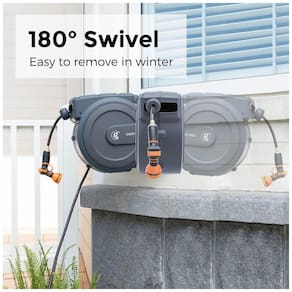 A mangueira híbrida flexível para todos os climas e resistente à abrasão garante que o carretel da mangueira seja resistente a vazamentos e duradouro. Os 23,77 metros de mangueira de 1,27 centímetros passaram no teste de pressão de 200 PSI e no teste de pressão de ruptura de 600 PSI.