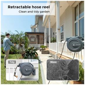 Dê um puxão suave na mangueira, o carretel da mangueira se retrairá automaticamente de volta. O sistema retrátil e de orientação exclusivo pode enrolar a mangueira perfeitamente, sem o problema de torcer e emaranhar.
