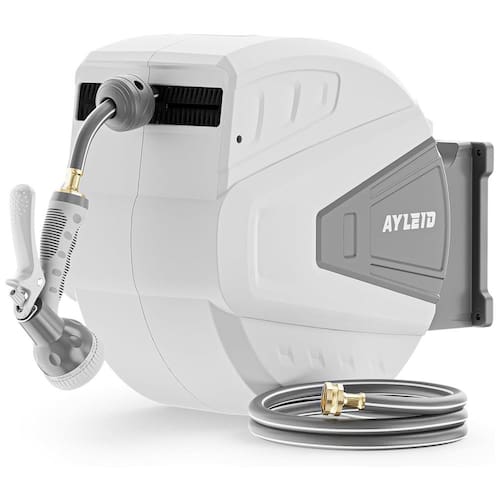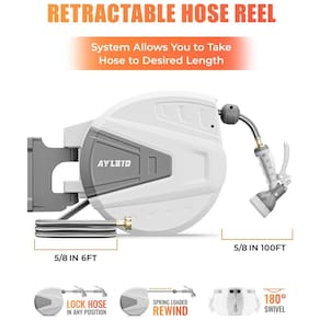 Pacote incluído: 1 carretel Ayleid com mangueira de 30,48 metros 1 bocal de mangueira 1 bocal de spray com 9 funções 1 suporte de montagem em parede 4 parafusos 1 manual do usuário. Este conjunto completo proporciona uma solução abrangente para suas necessidades de irrigação