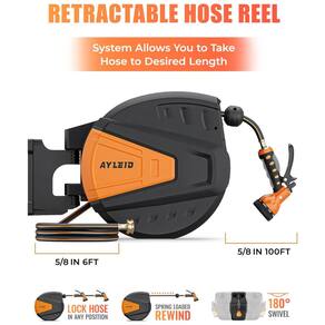 Bloqueio livre: Quando você puxa a mangueira no comprimento necessário, ela trava automaticamente na posição para evitar que a mangueira se retraia, eliminando comprimento extra que poderia causar dobras e emaranhados, proporcionando maior conveniência durante o uso da água.