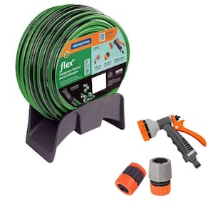 Com um design robusto e versátil, esta mangueira fornece um desempenho confiável, suportando uma pressão máxima de 10 bar (145 psi), o que a torna adequada para diversas aplicações de jardinagem e limpeza. Acompanha a mangueira um suporte prático para armazenamento, que evita emaranhados e facilita a organização, além de uma pistola de pulverização que permite ajustar a intensidade do jato d'água conforme a necessidade. Essa pistola é essencial para diferentes tipos de tarefas, desde a limpeza delicada de plantas até a lavagem de superfícies mais resistentes.