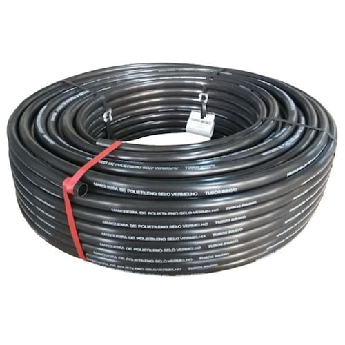 Mangueira de polietileno 3/4 x 1,80 x 100 m - selo vermelho Mangueira de polietileno 3/4'' x 100 m - selo vermelho As mangueiras de polietileno tubos bravo foram desenvolvidas com tecnologia para aplicação em fiação elétrica conduíte e também no transporte de fluidos através de recalque de bombas ou gravidade, a facilidade de aplicação e sua composição de material ecologicamente correto são uma das vantagens deste produto. Aplicações: O uso de mangueira é bem diversificado, ela é característica de atividades agrícolas, mas também pode ser empregada em construções ou em uso geral no dia a dia. A mangueira de polietileno preta é bastante comum e pode ser Utilizado em redes de abastecimento ou sistemas que envolvam o uso de água em serviços agrícolas. Utilizado sob o solo, a mangueira de polietileno preta pode ser incluída em sistemas de irrigação. Esse processo possibilita que a planta seja regada de forma mais eficaz e controlada, o que é fundamental para o seu desenvolvimento. A mangueira de polietileno preta também pode auxiliar no processo inverso que é o da retirada do excesso de água, fazendo uma drenagem no local. Descrição técnica: - material: polietileno; - medida: 3/4 - cor: preto - selo vermelho - uso ideal: transporte de fluídos - comprimento: 100 metros - espessura da parede: 1,80 mm - semi flexível suporta curvaturas - pode ficar exposta ao sol - também conhecida como mangueira de irrigação Esta mangueira não é indicada para uso em jardim doméstico Atenção - limite de uma unidade por compra Para atender os tamanhos da embalagem Compras que não respeitarem essas quantidades serão canceladas Para comprar mais unidades será necessário realizar compras diferentes até atingir a quantidade o que você necessita. Marca: Não Informado