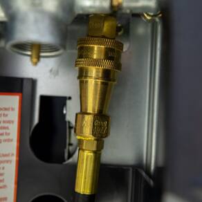 - A conexão POL se conecta diretamente ao tanque de propano de 20 kg. Material da mangueira testado para 400 psi