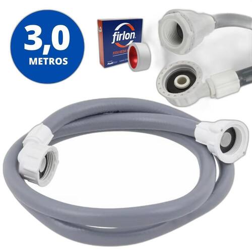 Mangueira entrada água máquina de lavar universal 3m metros cinza + fita veda rosca ledmang Mangueira de entrada de água para lavadora universal com 3 metros cinza - com para torneirda de 3/4 para 1/2 polegada Modelo universal, perfeita para todos os modelos de máquina de lavar. compatível com todos as marcas de lavadoras electrolux, brastemp, consul, lg, samsung, etc. Fácil instalação, maior flexibilidade e durabilidade. Acompanha para torneira de 3/4 para 1/2. Especificações técnicas Diâmetro da rosca: 3/4 Comprimento: 3m Diâmentro interno: 24,5mm para torneira: 3/4 para 1/2 Fita veda rosca teflon 12mm x 5m firlon Fita veda rosca teflon firlon é produzida pela plastifluor que líder de produção para o mercado brasileiro. Produto com excelência em qualidade, supera a norma abnt nbr 16368:2015. Características Fácil aplicação Perfeita estanqueidade Resistene à temperatura e variação Indicada para instalações hidraulicas Vedação roscas e conexões Pode ser utilizada em água fria, quente, vapor, combustíveis e gases Especificações técnica Composição química: ptfe poli-tetra-fluor-etileno . Aplicação: vedação de roscas e conexões em tubulações de água fria, água quente, vapor, combustíveis, fluidos e gases em geral. Temperatura de trabalho: de - 90c até +240c. Resistência química: material de baixíssima reatividade química, resistente aos líquidos e gases comumente utilizados em instalações industriais como: ácidos, bases, solventes, combustíveis, lubrificantes, vapor, gases de processo etc. Compatibilidade com oxigênio: compatível com oxigênio líquido ou gasoso em temperatura ambiente e criogênicas. Consultar quanto ao uso acima de 50c. Tolerâncias dimensionais: sempre maior ou igual que a espessura e densidade mínima. Marca: firlon Fabricante: plastifluor Comprimento: 5 metros Largura: 12 milímetros O kit segue com todos os itens para montagem e pronto para uso após a instalação 30 dias para defeitos de fabricação. Itens inclusos 01 mangueira de entrada de água com 3m 02 aneis de vedação 01 para torneira 3/4 para 1/2 01 rolo de fita veda rosca 12mm x 5m