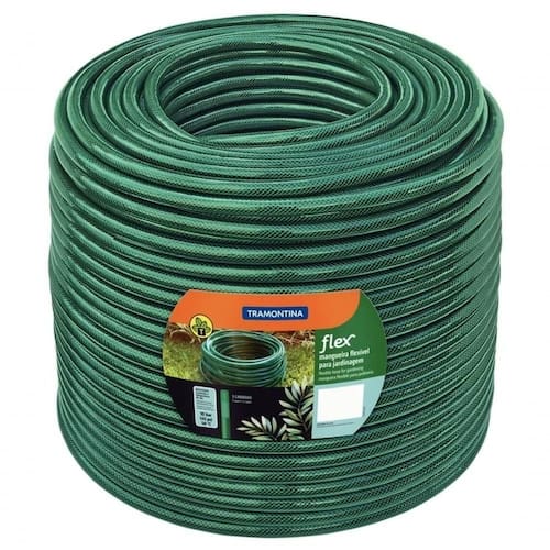 - Para maior resistência possui 3 camadas distintas: interna em PVC, intermediária em fio de poliéster trançado e externa em PVC.