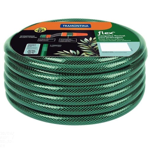Leve mais conforto e bem-estar para as atividades ao ar livre. A mangueira flex Tramontina verde em PVC 3 camadas 15 m com engate rosqueado e esguicho é a companhia perfeita para cuidar do seu jardim e deixá-lo ainda mais bonito. Com 15 m de comprimento, ela é produzida em PVC, material resistente que garante alta flexibilidade. Devido a suas características, ela possibilita atingir os pontos mais difíceis na hora de irrigar o seu jardim. Muito eficiência e fácil de usar, ainda acompanha um esguicho com jato regulável e um adaptador com engate rosqueado. Produtos práticos e perfeitos para seu dia a dia!Orientações- Mangueira flexível e de fácil manuseio.