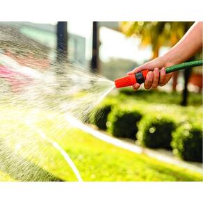 Mangueira flexível e de fácil manuseio.- Possui 20 metros de comprimento.- Recomendada para situações de uso com pressão da água de até 10 bar [145 psi] e temperatura de 50 °C.- Para maior resistência possui 3 camadas distintas: interna em PVC, intermediária em fio de poliéster trançado e externa em PVC.- Acompanha 01 esguicho com jato regulável, 01 suporte fixo para mangueira e 01 adaptador com engate rosqueado.- O esguicho possui prático sistema de regulagem do fluxo dágua através do regulador frontal.- O esguicho é conectado em mangueiras através de sistema de fixação rosqueado.