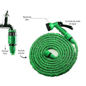 Mangueira mágica super compacta aumenta em até 3x o tamanho quando em uso. Acompanha ferramenta de aplicação que permite 7 tipo de jatos diferentes. A mangueira mágica expande e contrai sem nós, automaticamente após o encerramento do fluxo de água. Evite tempo perdido enrolando e desenrolando metros de mangueira, nem se preocupar com a mangueira dobrando impedindo o curso da água. Não ocupa espaço, podendo ser guardada dentro de uma pequena gaveta. Além de super resistente. Possui um jato com sete funções, proporcionando muito mais precisão e rapidez no trabalho. Volta ao tamanho compacto quando não estiver em uso. Acompanha a mangueira um esguicho com bicos reguláveis, proporcionando um controle total sob o jato de água escolhido. Pode ser utilizada para lavar o carro, lavar calçada, dar banho no seu cachorro ou gato, regar suas plantas, etc. . Produto leve e resistente, não há torções como nas mangueiras comuns. Especificações do produto: tamanho: 30 metros em uso