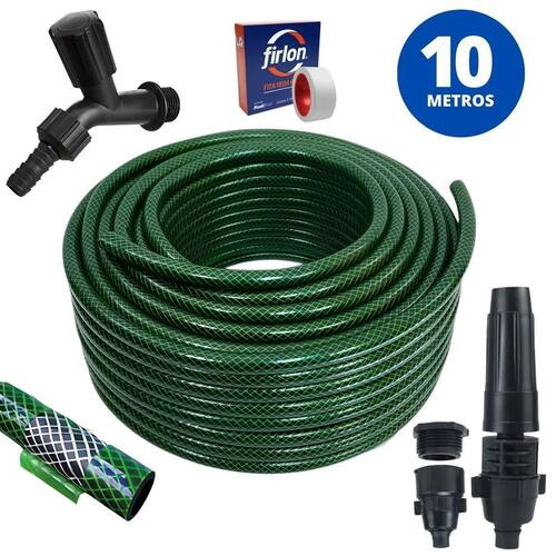 Mangueira De Jardim 10m Metros Reforçada Trançada + Torneira + Fita Veda Rosca Ledmang