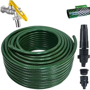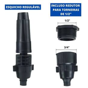 30M de Mangueira Trançada Flexível 01 Engate de Torneira 1/2 e 3/4 01 Esguicho Regulável 01 Torneira de Metal 1/2