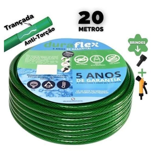 Mangueira trançada tripla camada duraflex as mangueiras duraflex tem uma flexibilidade excelente além de ser uma mangueira leve para trabalhar, extremamente durável. Esse modelo conta com reforço extra em suas tramas com fios de nylon de alta resistência de fato é uma mangueira forte, bonita, durável e que dura por muitos anos no seu quinta.