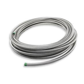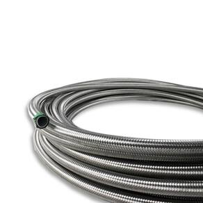 A Mangueira Menco Hidráulica R14 Teflon Malha Inox 1/2 5Mt atende às especificações SAE J527 e suporta temperaturas entre -40ºC e 204ºC. A embalagem contém 5 metros de mangueira R14 1/2 polegada.