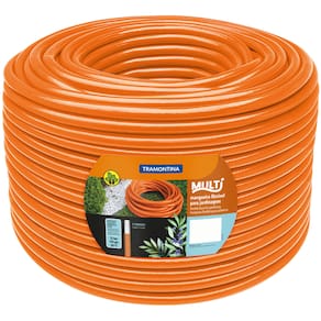 Com a mangueira Multi 3/4" Tramontina laranja em PVC 3 camadas 50 m, você poderá cuidar do seu jardim com mais praticidade e facilidade. A mangueira possibilitará atingir os pontos mais difíceis na hora de irrigar o seu jardim, devido a ser produzida com material resistente e altamente flexível. Revestida por três camadas, a mangueira também apresenta maior resistência devido ao poliéster, que evita que o produto fique danificado caso seja torcido. Praticidade e qualidade é com a Tramontina!
