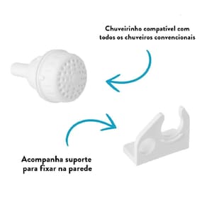 Ela conta com suporte de parede, chuveirinho que controla a saída de água podendo ser removido.