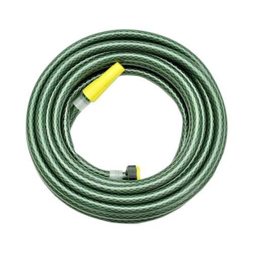 Os Conjuntos de Mangueiras Jardim são indicadas para transporte água de baixa pressão, produzidas através de coextrusão, são muito utilizadas em irrigação com baixa pressão e também em jardinagem. Possui alta flexibilidade, o que facilita o manuseio da mangueira em locais de difícil acesso. São fabricadas com uma camada interna de PVC ecológico oriundo de reciclagem , uma trama de fio em poliéster e outra camada de Pvc. Acompanha esguicho e duas opções de conexão para torneiras 1/2 e 3/4. Para um melhor uso recomenda-se utiliza-la em locais com pressão de água de até 12 bar [174 psi], não mantê-la exposta ao sol após uso, com temperaturas em até 50º. Cor Verde Fabricante: Primavera Marca: Não Informado Ean: 7898669491795