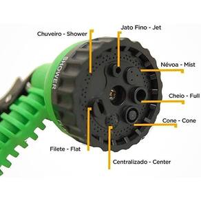 Mangueira que encolhe para irrigação mágica 15m lavar magica Cor: verde Mangueira mágica expansível/retrátil 15m com gatilho 7 em 1 Mangueira flexível que se expande até 3x o seu tamanho: 5m quando desligada até 15m quando ligada. Acompanha esguicho com 7 funções para melhor uso do jato de água. Maior pressão de água que mangueiras comuns. Fácil de guardar e manusear, sem enroscamentos. Possui reforço em metal nas pontas, proporcionando maior resistência. É excelente para você executar serviços domésticos como limpeza de garagens, pequenos quintais e jardins, carros e muito mais, com praticidade e eficiência.