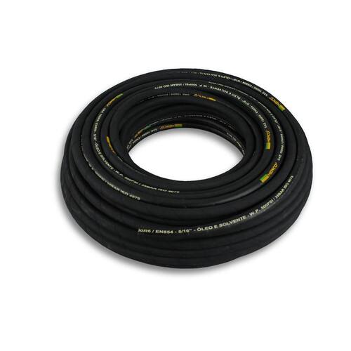 A Mangueira Hidráulica R6 Óleo Solvente E Graxa 5/16 Pol - 2Mt é perfeita para atender suas necessidades em linhas de retorno para circuitos óleo-dinâmicos de baixa pressão. Com um composto especial 100% de borracha sintética resistente à abrasão ozônio, intempéries e óleos minerais, essa mangueira é garantia de durabilidade e resistência.