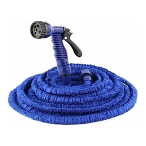 A mangueira retrátil de 30 metros ocupa pouco espaço de armazenamento. Resistente ao atrito e ao choque. Esta é uma nova mangueira que tem a qualidade de triplicar seu tamanho ao abrir a torneira de água. Ele volta ao seu tamanho quando a água é fechada, à medida que se contrai e fica menor até recuperar seu tamanho inicial. Facilita a rega. Ele se expande automaticamente. Luz.