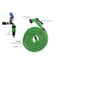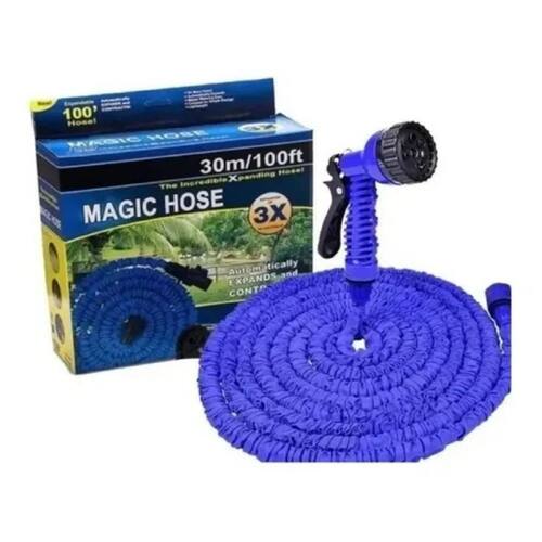 A mangueira retrátil de 30 metros ocupa pouco espaço de armazenamento. Resistente ao atrito e ao choque. Esta é uma nova mangueira que tem a qualidade de triplicar seu tamanho ao abrir a torneira de água. Ele volta ao seu tamanho quando a água é fechada, à medida que se contrai e fica menor até recuperar seu tamanho inicial. Facilita a rega. Ele se expande automaticamente. Luz.