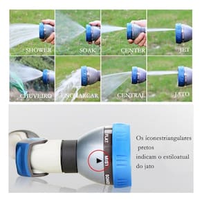 - mangueira magica. - cabeçotes em alumínio. - bolsa para transporte. - suporte de pendurar. - bico de alta pressão.