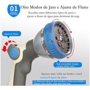 Mangueira retrátil flexível expansível reforçada jardim casa Cor: azul Transforme suas tarefas de jardinagem e limpeza em momentos de praticidade com a mangueira retrátil flexível expansível. Com seus 30 metros de comprimento, ela expande automaticamente com o fluxo de água e se retrai rapidamente após o uso, economizando espaço e facilitando o armazenamento.