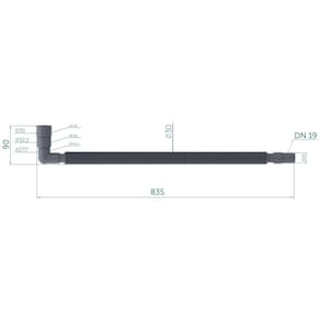 - Comprimento: 4,0 m (máx.) e 1,6 m (mín.); - Diâmetros de saída: DN19 x DN21,5 x DN26 x DN29.
