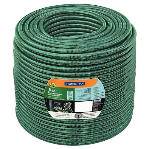 Transforme a tarefa de cuidar do seu jardim em um momento agradável com a Mangueira Flex 3/4'' da Tramontina. Projetada para oferecer a combinação perfeita de flexibilidade, resistência e durabilidade, esta mangueira facilita o acesso aos cantos mais distantes, garantindo uma irrigação completa e eficiente. Com 50 metros de comprimento, é ideal para jardins de todos os tamanhos, proporcionando praticidade tanto para uso doméstico quanto profissional. Sua construção em PVC de 3 camadas interna, intermediária em fio de poliéster trançado e externa garante alta resistência à pressão da água (até 10 bar ou 145 psi) e à temperatura (até 50C), prolongando a vida útil do produto. Invista em uma solução que simplifica a irrigação e realça a beleza do seu jardim com a qualidade e confiabilidade que só a Tramontina oferece.