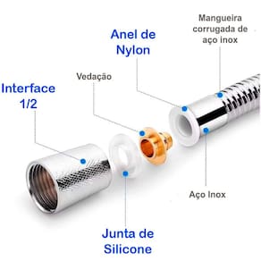 Engate flexível em aço inox para instalações hidráulicas e ligação de duchas, chuveiros, duchas higiênicas e etc. Essencial nas instalações de duchas de banho com desviador e chuveiro com aquecimento central a gás, solar ou elétrico. Fabricado em aço inox, possui terminais já com anel de vedação para uma instalação mais simplificada e rosca 1/2'' polegada.