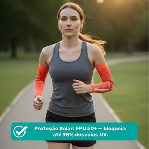 manguito lux laranja, manguito refletivo, manguito esportivo, manguito corrida noturna, manguito compressão, manguito n1 sport, manguito ciclismo, manguito treino, proteção solar fpu50, manguito visibilidade, manguito performance, manguito respirável, manguito alta tecnologia, manguito corredor, acessório esportivo refletivo.