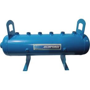 Manifold de ar comprimido DH25-6 (mod.1) com 02 conexões nas calotas, 01 de 2'' e 01 de 1". 06 saídas superior de 1". Luvas laterais para acessórios de segurança (manômetro e válvula de segurança) de 1/4'' e luva inferior de 1/4'' (dreno). Pressão máxima de trabalho 12,3kg/cm. Dimensões; Altura: 350 mm, Comprimento total: 1030 mm, Diametro corpo: 180mm, Altura total com alça de movimentação: 430 mm. Acompanha documentação com certificado de teste hidrostático. **Este anúncio não contempla os acessórios de segurança (manômetro, válvula de segurança e dreno - necessários para uso) - podendo ser adquiridos separadamente.