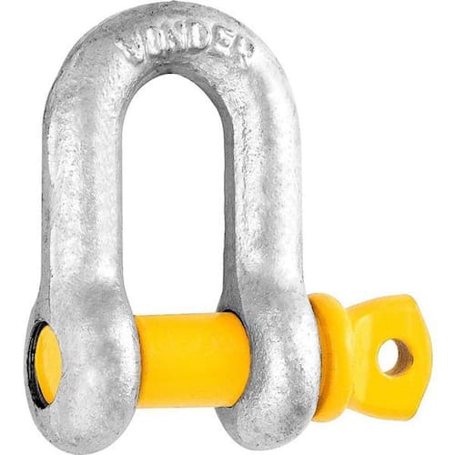 Utilizada como elemento de união em cabos de aço e correntes de aço nos processos de fixação, amarração, movimentação, elevação e içamentos de cargas, com uso industrial. A medida da manilha deve ser compatível com o diâmetro do cabo.