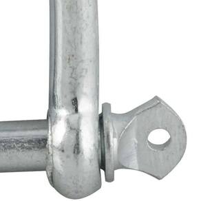 Especificações Medida da manilha: 5/8 - 15,9 mm Carga de trabalho da manilha: 0,8 tf Material da manilha: Aço carbono Tipo de acabamento: Zincado Fator de segurança da manilha: 2:1 Abertura entre olhais (A): 31,8 mm Diâmetro do corpo (C): 15,0 mm Diâmetro do pino (D): 15,0 mm Largura externa (E): 60,6 mm Diâmetro externo do olhal (F): 27,0 mm Altura total (K): 84,6 mm Comprimento do pino (M): 83,8 mm Massa aproximada: 0,32 kg Itens Inclusos 1 Manilha reta para cabo de aço Indicações de Uso Conexão de cabos de aço em sistemas de amarração para cargas leves. Fixação de equipamentos e ferramentas em oficinas e galpões. Utilização em atividades de organização e arrumação de cargas em geral. Perguntas Frequentes (FAQ) Pergunta: Qual a capacidade de carga da manilha?