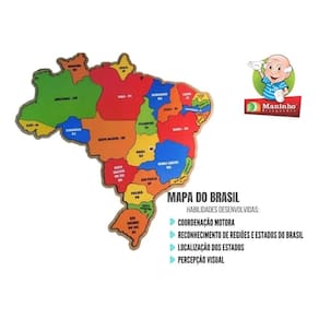 As tardes chuvosas serão as melhores Com o quebra-cabeça Maninho Mapa do Brasil: Regiões e Estados, você desfrutará de longas horas de entretenimento garantido. Além disso, você exercitará seu cérebro aumentando sua concentração e desenvolvendo sua criatividade. Aceite o desafio de montá-lo no menor tempo possível, sozinho ou trabalhando em equipe com amigos ou familiares.