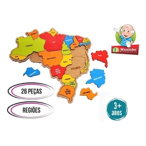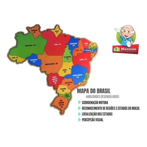 Maninho Quebra-Cabeça Grande Pedagógico Em Madeira Mapa Bras
