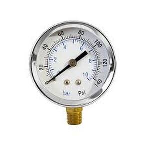 Manometro compressor 140lbs/ 10 bar vertical rottan manometro compressor 140lbs/ 10 bar vertical rotta Equipamento para medir pressão interna do circuito. Fornecido em várias faixas , deve ser dimensionado conforme aplicação. Montagem tipo vertical é largamente utilizado em conjuntos de preparação do ar e rede de ar. :: especificações técnicas: - manômetro vertical 1/4 50mm 10 bar - diâmetro: 50mm - rosca: inferior 1/4 npt - escala: 0-1 mpa / 0-150 psi - material: caixa externa em alumínio / rosca em latão / visor acrílico Ref.: rotta-600321 Marca: rotta Marca: Não Informado