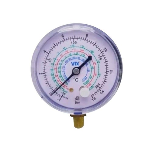 O Manômetro Para Manifold De Baixa Vix R22/134A/404/410 Também é conhecido como analisador de gás ,é responsável por verificar a pressão de trabalho antes e depois do compressor funcionar.