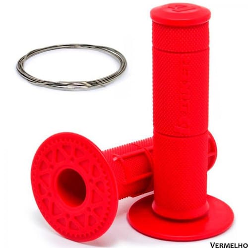 Com micro pirâmides direcionais, o controle é muito maior e sua espessura mais fina proporciona ajuda na redução da vibração e do cansaço , que em conjunto com a parte retangular ( waffles ), oferecem muito mais fixação às mãos e dedos, garantindo toda a qualidade Biker para sua pilotagem. Especificações Manopla Biker Diamond Waffle Composição em mono composto de borracha sintética - com uma única densidade, é mais fina e durável, proporcionando muito mais naturalidade durante o uso Metade retangular, metade piramidal - oferece maior controle, menor acúmulo de sujeira e consequentemente mais grip às suas luvas Indicada para ambientes úmidos - ideal para lugares com muita lama e umidade, garante maior grip e segurança para sua pilotagem Muito mais conforto - os desenhos ainda auxiliam a manter as mãos mais confortáveis, reduzindo a vibração e o cansaço Peso seco aproximado: 100 gramas *Acompanha arame em inox para auxílio na fixação *Além da cor, pequenos detalhes e acabamentos podem não ficar evidentes nas fotos, por isso, as imagens são meramente ilustrativas.