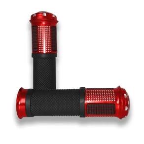 Manopla borracha antiderrapante; Acabamento em alumínio anodizado; Confortavel Peso na cor da manopla; Manopla 13cm Aplicação universal para guidão 22 mm 7/8; Cores: vermelho