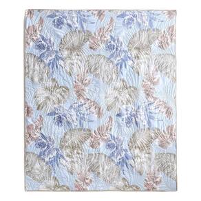 Cobertor acolchoado Benjara Heli 50x60, estampa tropical, azul porcelana, rosa arenoso e cáqui safári