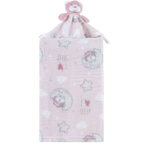 Manta com Naninha Flannel Estampada para Bebê 75x100 Rosa Urso -