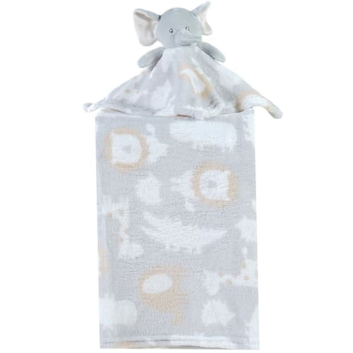 Manta com Naninha Flannel Estampada para Bebê 75x100 Cinza Elefante -