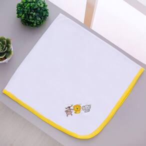 Manta Cueiro Malha 100% Algodão Para Bebê Safari Branco Com Amarelo