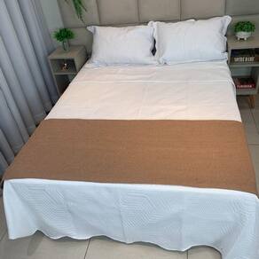Um novo jeito que criamos é usar ela dobrada como peseira no cama que dá um toque todo especial na cama posta.
