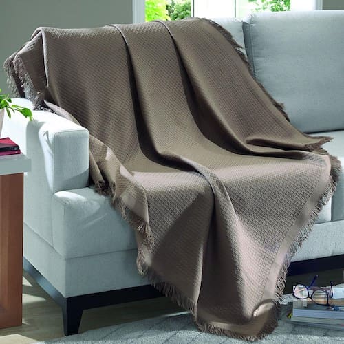 Essa Manta Decorativa tem texturas trabalhadas em fios 100% Algodão e acabamento com franja, que proporciona conforto e praticidade.