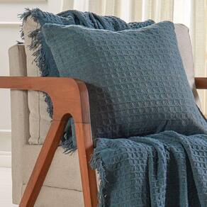 Manta Decorativa para Sofá Waffle 100% Algodão 160x220cm Azul Cobalt -
