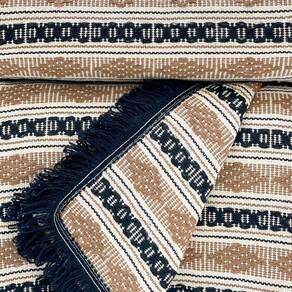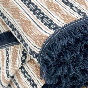 Manta Diamante Super King 100% Algodão 260x250 Listra Bege Com Franja Preta