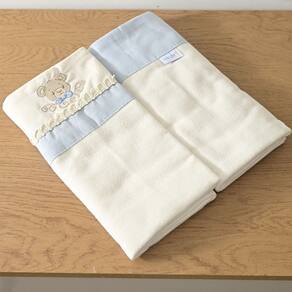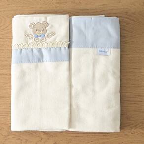 Manta Flanelada Lisa com Vira Bordada para Bebê - Urso Azul
